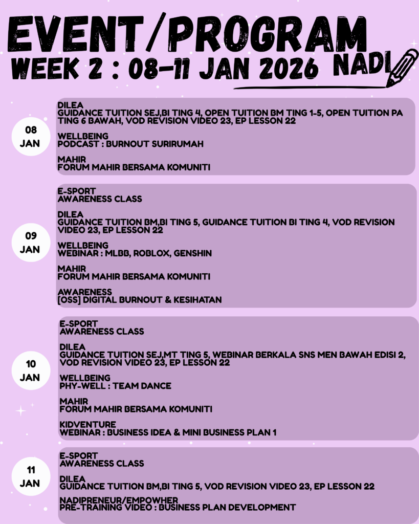 ๐ Ayuh manfaatkan peluang pembelajaran dan penyertaan aktiviti sepanjang minggu ini.