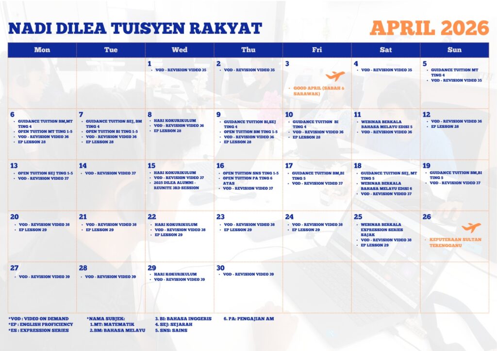 JADUAL AKTIVITI PROGRAM BULAN APRIL 2026