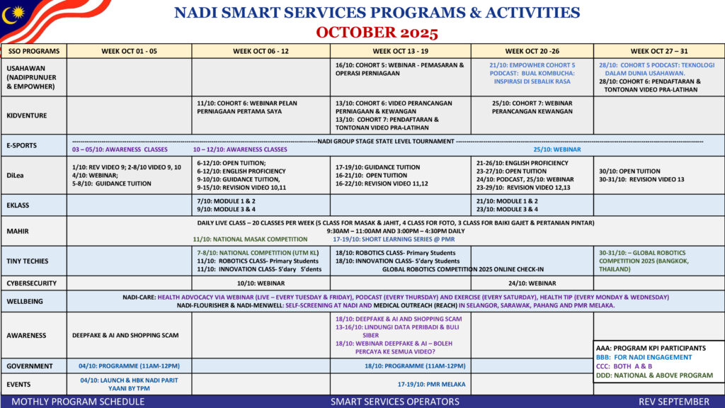 TAKWIM PROGRAM PERKHIDMATAN PINTAR OKTOBER 2025