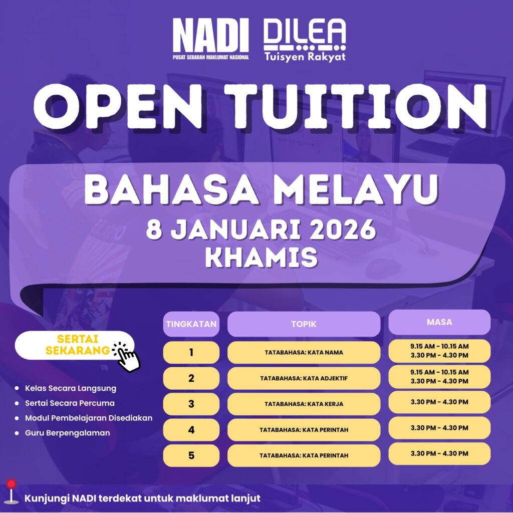 #NADI #DILEA #OpenTuition #TuisyenRakyat #BahasaMelayu #Sesi2026 #KelasPercuma